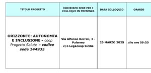 CALENDARIO COLLOQUI DI SELEZIONE – BANDO SERVIZIO CIVILE DEL 18/12/2024